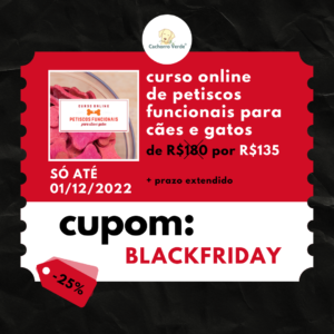 O curso online de Petiscos Funcionais para cães e gatos também ganhou desconto de 25% na inscrição e prazo extendido em 30 dias.