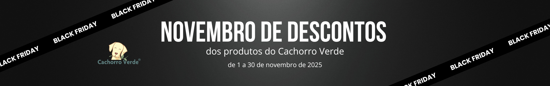 As promoções de Black Friday já se tornaram uma tradição aqui no Cachorro Verde. Estamos repetindo a promoção dos últimos anos e matendo o período de descontos por UM MÊS INTEIRO.