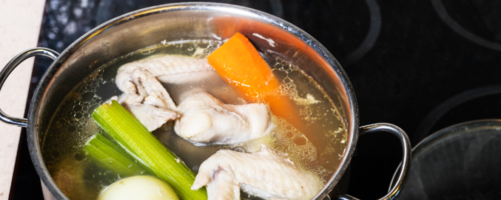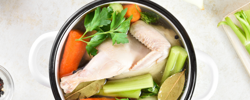 Existem inúmeras maneiras de preparar um bom caldo caseiro. A receita que vou ensinar aqui é simples e usa frango. Mas você pode preparar com ossos bovinos, com peixe inteiro, com ossos de porco e outras espécies de animais – cordeiro, coelho ou cabrito, por exemplo, para pets alérgicos a frango ou boi – usando os mesmos princípios.