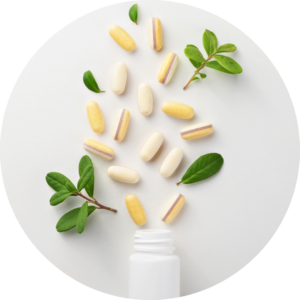 - Em farmácias, você encontra cápsulas gelatinosas de vitamina E e óleo de peixe (fonte de ômegas-3) e óleo de fígado de bacalhau em cápsulas ou em frasco.
