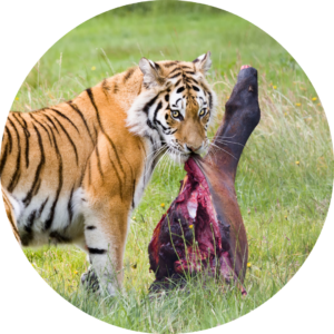 Na natureza, a dieta do felino é 95% composta por presa, tecido animal.