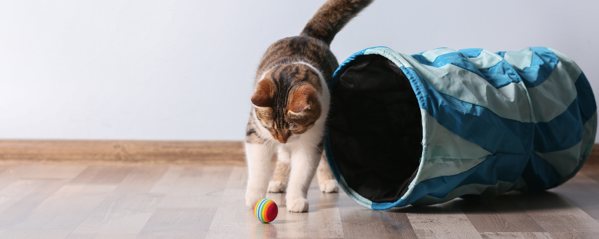 Para os gatos enriquecimento ambiental é chave: por exemplo, esconder pequenas porções de comida pela casa para ele localizar e assim exercitar o comportamento de caça – mais estimulante que comer a refeição no potinho. Ter em casa um poste carpetado alto, firme e se possível mantido perto da janela (fechada) para o felino acompanhar o movimento da rua. Se for possível proporcionar área externa telada, pra ele tomar sol e ar fresco. Tentar costumar seu gato a passear de peitoral e guia. Brincadeira de varinha com penas (sessões de 10-15 minutos 2x ao dia). Soprar bolhinhas de sabão. Ratinhos de pelúcia (atire um no chão!). Catnip, a famosa erva do gato, não funciona com todos, mas produz uma euforia gostosa graças a uma substância chamada Nepelactona, mas não vicia. Caixa de papelão! Bolinha de papel, bolinha de ping-pong…
