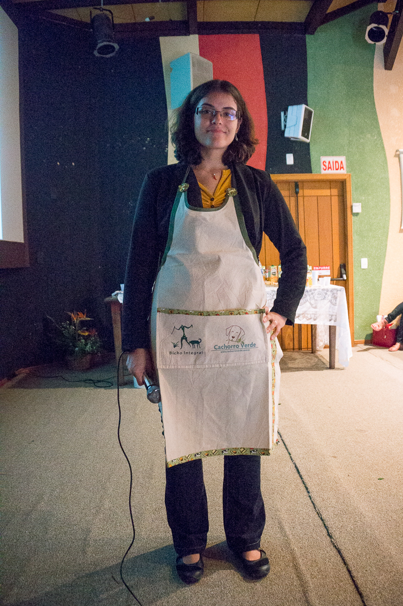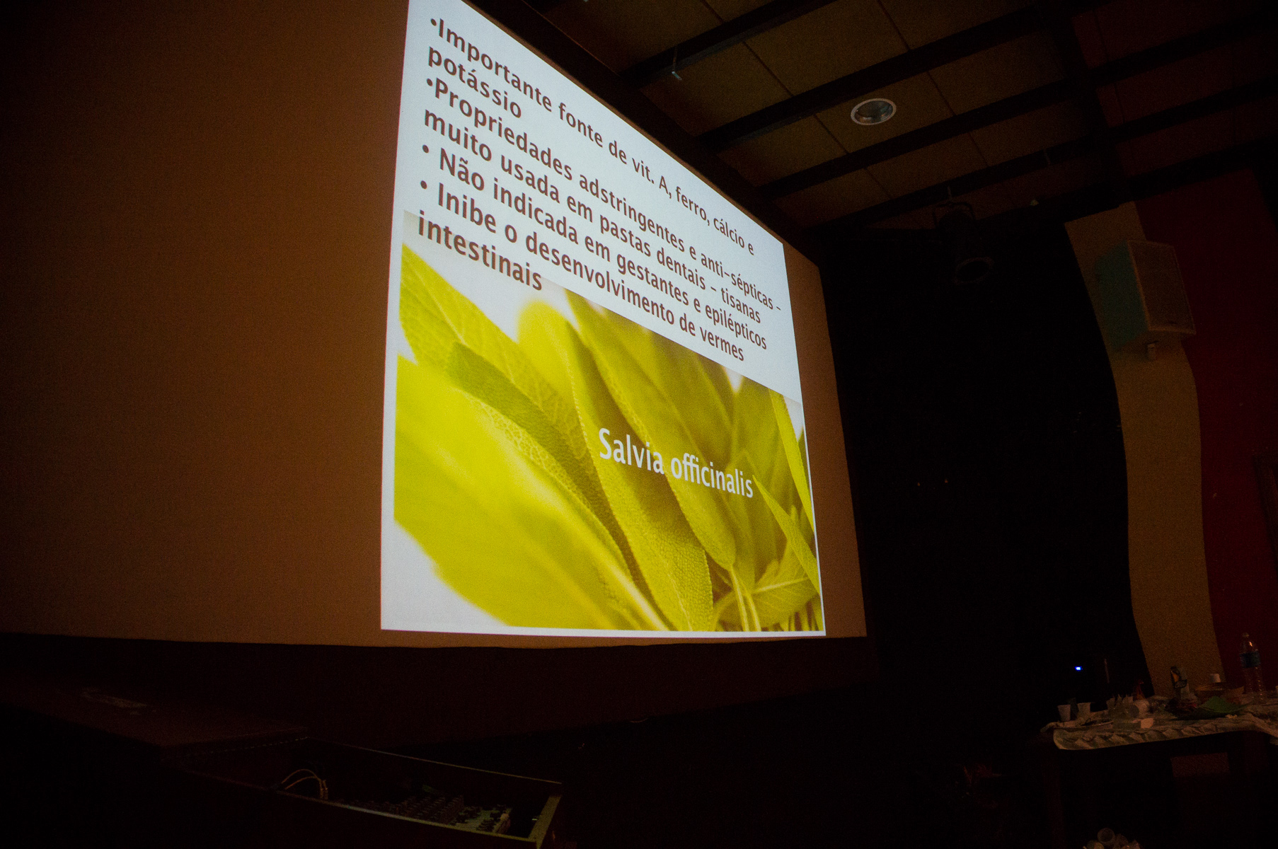Mas não foi só pelo enorme público ávido por AN que o curso surpreendeu. Pela primeira vez em 22 cursos contamos com uma parceira, a médica-veterinária homeopata Dra. Carmen Cocca, amigona querida. A Carmen bateu um papo com a gente sobre as propriedades medicinais de cinco ervinhas mágicas: salsinha, orégano, tomilho, sálvia e manjericão. Brinco que essa foi a turma mais privilegiada que já tivemos, porque a Carmen montou um estande mega caprichado da loja holística dela, a Bicho Integral, com itens cobiçados por qualquer adepto de Alimentação Natural, como balança digital, óleo de côco e produtos anti-pulgas e anti-carrapatos à base de neem. Foi um excelente complemento à palestra, sem dúvida. (Carmen, prepare-se pra ser sequestrada e ter sua loja saqueada na véspera de todo curso daqui pra frente.)