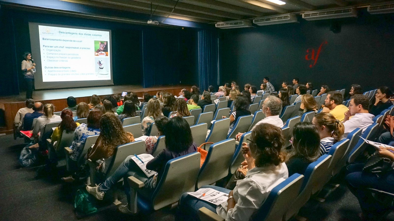 O público também merece aplausos. Gente muito simpática, tutores de cães e gatos, criadores, protetores, quinze veterinários e três estudantes. Na turma de vets, uma colega que atende exclusivamente felinos e o Kleber Pereira Felizola, que trabalha com Alimentação Natural caseira para pets desde 2013, quando assistiu ao curso pela primeira vez. Aliás, quase não reconheci o Kleber. Ele emagreceu 30kg! E contou que conseguiu esse feito incorporando conceitos da AN em sua própria dieta, como a troca de itens processados por alimentos in natura. Parabéns, Kleber!