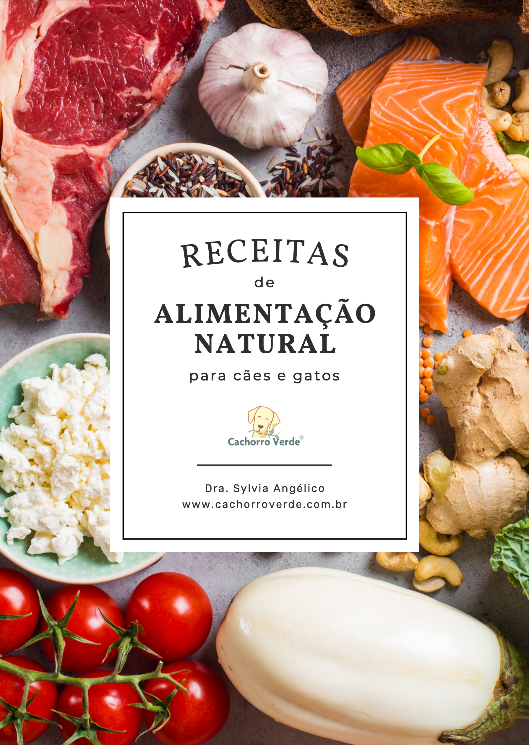 É um livro digital de receitas de refeições de Alimentação Natural para cães e gatos elaboradas pela Dra. Sylvia Angélico. São 10 receitas para cães e 6 receitas para gatos, entre opções de refeições cozidas e cruas, com e sem ossos. Com orientações sobre o quanto servir de cada receita, qual suplemento usar e em qual dosagem, e todo o passo-a-passo do preparo. As receitas são adequadas para cães e para gatos de todas as idades e que sejam saudáveis – não são indicadas para pacientes renais, diabéticos, cardiopatas, etc… Casos assim também podem receber Alimentação Natural, mas requerem um cardápio especial com receitas um pouco diferentes.