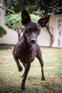 Polly foi resgatada por Protetoras formidáveis, juntamente com outros cães, como o Schnauzer Rodolfo , em uma casa repleta de cães doentes e famintos. Praticamente não tinha pelos no corpo, de tão acometida pela sarna demodécica (a tal “sarna negra”). Estava muito debilitada e ainda assim encontrava forças para abanar o rabinho para as pessoas. Foi batizada de Pollyana, uma provável referência ao seu estado de espírito otimista. E assim, ao longo de meses, Polly recebeu tratamento veterinário, ração de boa qualidade, se recuperou da caquexia e de um quadro de anemia. Uma vez restabelecida, foi castrada e depois vacinada. Apesar de ter porte pequeno e temperamento carinhoso e brincalhão, a pelagem inteira preta e a estampada vira-latice não apelavam às pessoas, e ela passou mais de um ano disponível para adoção até vir morar com a gente.