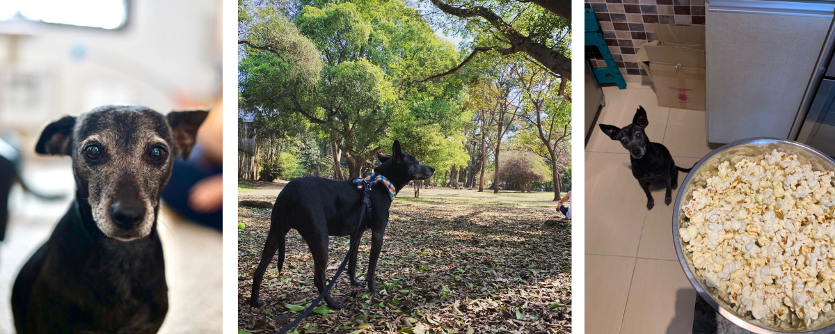 Esses dias a levei para um check-up completo, já me preparando para o início de algum quadro renal ou endócrino por conta da idade. Mas não apareceu nenhuma alteração. Ela está quase surda, mas enxerga bem, pula feito cabrito, tem uma fome de leão, a saúde cognitiva está preservada e tem ótimo condicionamento físico. Todos os dias eu escovo os dentes dela e depois caminhamos por no mínimo 1 hora – mas, por ela, seriam 2 horas por dia.