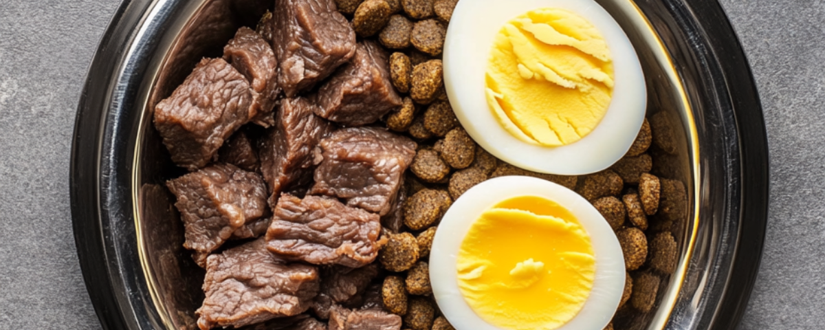 Adições valiosas são carnes magras bovinas, de aves, suínas; um pouquinho de vísceras (fígado, rim, baço etc), peixes ricos em ômega-3 (sardinha, manjubas, cavalinhas), ovo, kefir de leite ou cottage ou iogurte integral ou coalhada magra (sem adoçar), cogumelos cozidos e um pouco de vegetais como brócolis, pimentão amarelo ou vermelho, abóbora, cenoura, repolho roxo ou verde, amoras, kiwi, couve-manteiga ou rúcula ou agrião picadinhos etc e ervas (uma pitada de salsinha, coentro, manjericão, alecrim etc).