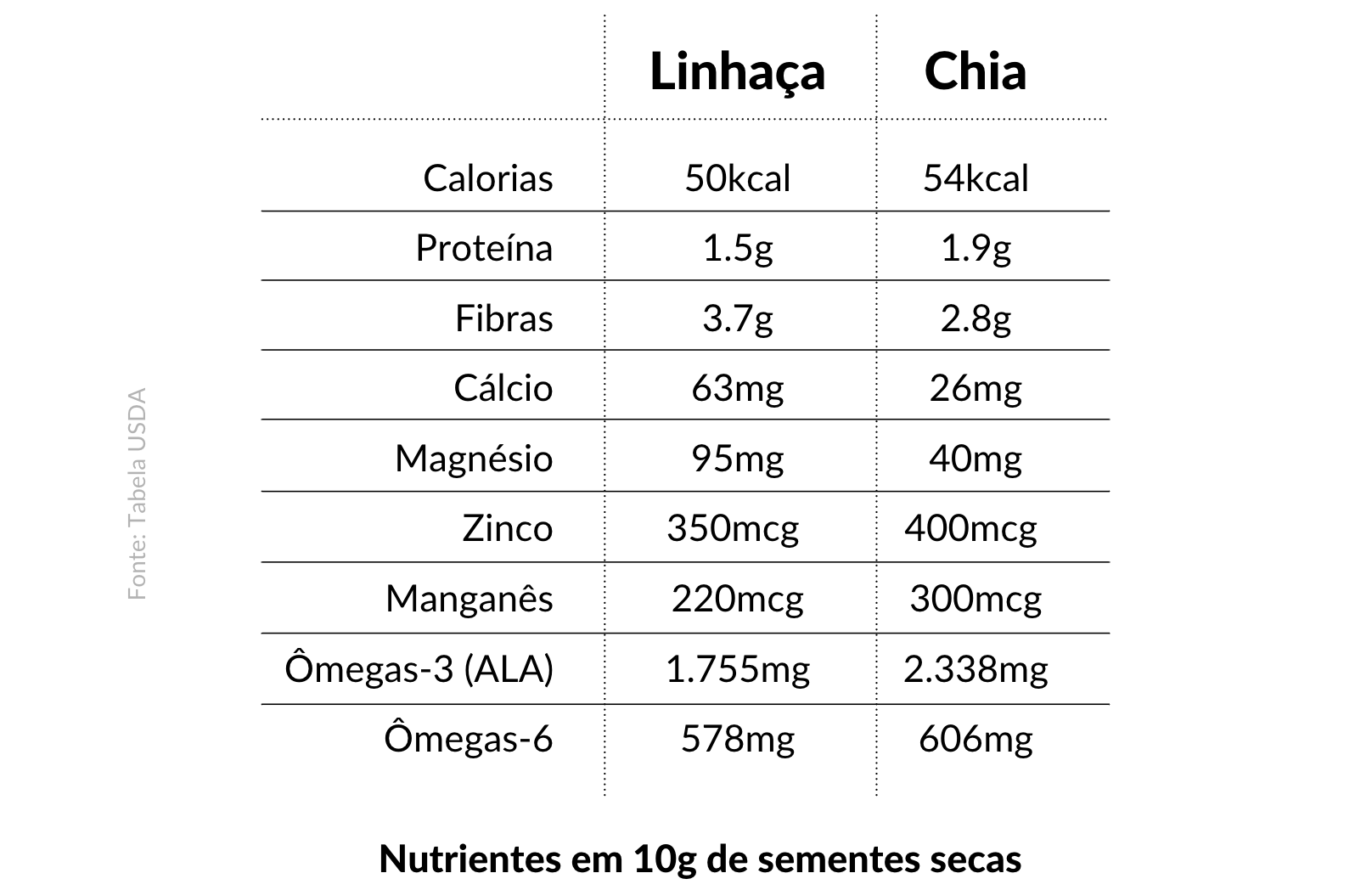 Os ômegas-3 presentes nas sementes de chia e de linhaça não são assimilados pelos felinos, mas os cães os aproveitam parcialmente (cerca de 8-15%).