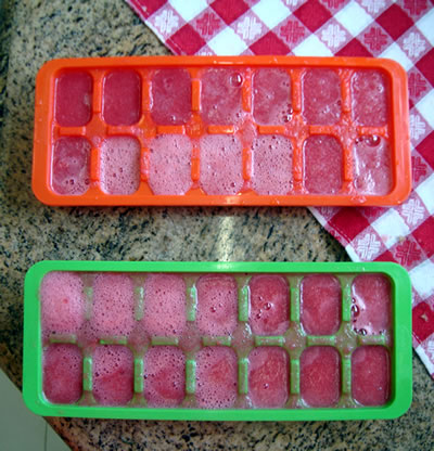 • Despeje o líquido em uma bandeja de gelo de modo a preencher cada espacinho e leve ao freezer. Deixe lá até congelar.