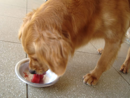 Ninguém merece o calorão infernal que tem feito. Nossos peludos, muito menos! Mas dele podem surgir ideias muito legais de refrescos para nossos amigões. Como o sorvete natural de frutas que nossa amiga (e talentosa arquiteta) Carol Oliva inventou para sua inseparável Golden, Tequilla!