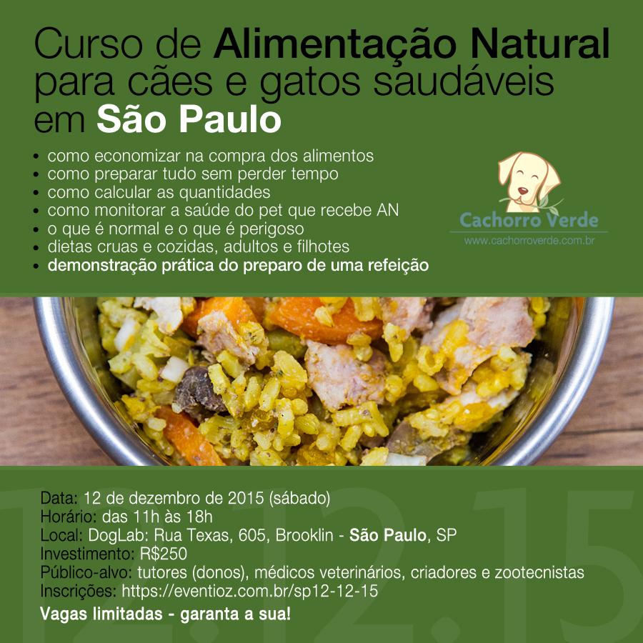 Programação: 11h – 12:30h: Teoria da Alimentação Natural (AN) do Cachorro Verde I: