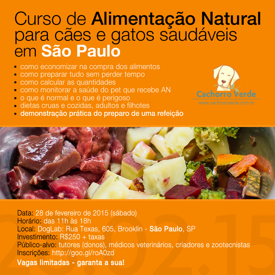É com muito orgulho que anunciamos mais uma edição do nosso curso teórico-prático sobre Alimentação Natural caseira para cães e gatos saudáveis. Não perca!