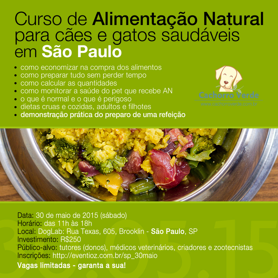 É com muito orgulho que anunciamos a terceira edição de 2015 do nosso curso teórico-prático sobre Alimentação Natural caseira para cães e gatos saudáveis. Não perca!
