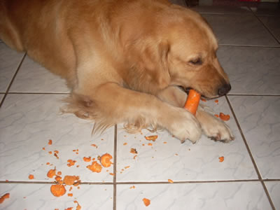 Budder, o Golden da Liz, é fã de uma cenoura!